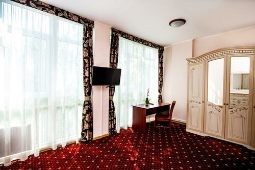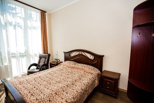 Случайно попали, случайно позвонили. Подкупила цена - на порядок дешевле отелей в Дубне, решили сменить локацию на Конаково. По интерьеру/экстерьеру: всё новое, всё рабочее, всё чистое и аккуратное. Ну вот захочешь придраться - и фиг найдешь к чему. Окей, ложки для обуви нет - это единственный недостаток. Ехали в стандарт, но когда узнали, что душ общий на этаже - сменили на люкс. За смешные деньги. Паркинг бесплатный, территория зеленая и охраняемая. Лифт как будто вчера с завода привезли и поставили. На ресепшене очень прикольный и приятный мужчина, поднял нам настроение. Кафе нет, но есть кухня. Мы туда не ходили, решили, что на сэкономленных на отеле пойдем в кафе. В общем, я вообще не ожидала такого уровня в районном городе Тверской области за такие цены. Респект, желаю вам полной заселенности? Посадки? Укладке? В общем пусть у вас будет много-много гостей😂