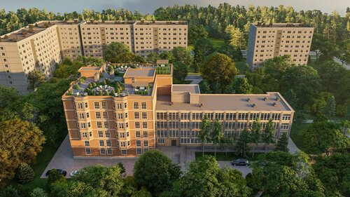 Здание 4-этажное с лифтом. Въезд через шлакбаум.